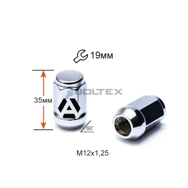 ALFARRO A801444 | M12×1,25×35 мм | Конус, закрытая | Matiz, Nissan, Niva, Subaru, Suzuki | Хром, ключ 19 | 30 грн/шт |