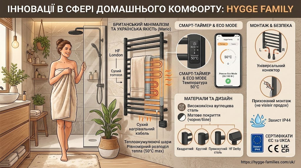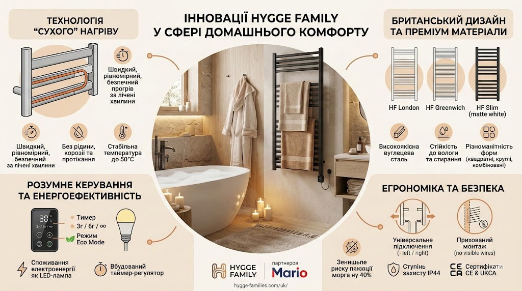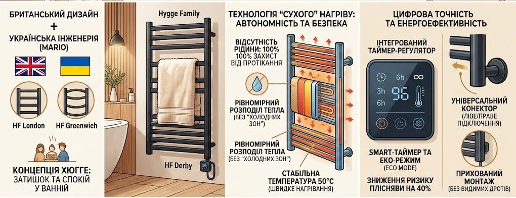 Hygge Family: інноваційні електричні рушникосушарки з технологією «сухого» нагріву та британським дизайном