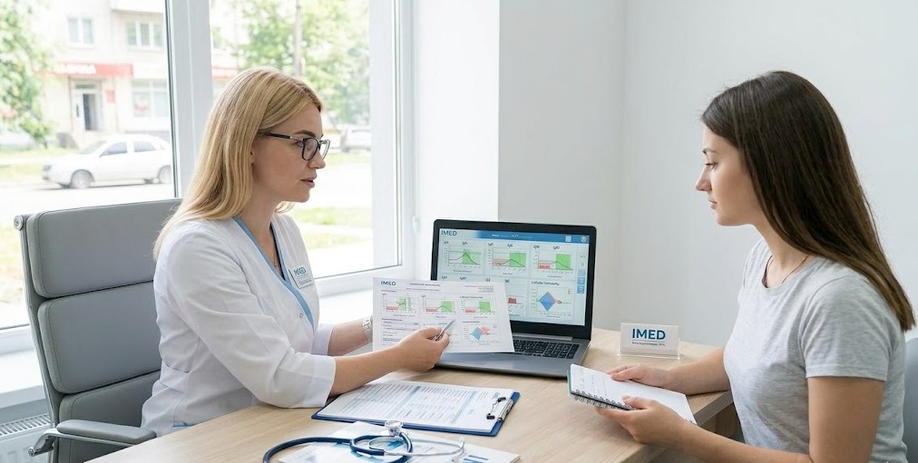 Консультація імунолога в «IMED» не обмежується стандартним опитуванням. Вона перетворюється на повноцінний клінічний аудит стану організму. Лікар аналізує історію захворювань, частоту інфекцій, реакції на вакцинацію, рівень стресу та навіть якість сну. За даними Harvard Medical School, хронічний стрес здатен знижувати активність імунної системи до 40%.